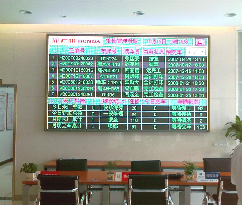 产品描述:可变情报板或称工业看板,动态显示数据。特点是可变、及时、醒目。广泛应用在 医院、车间、厂房、矿场、码头、车站、机场、停车场等场所。高速公路看板也属于此类应用。近年也应用在天气提示、尾气检测等信息公示上。 对接系统有:西门子组态系统、亚控组态王、远望谷烟草系统、中软烟草系统、环保尾气检测系统。还可针对客户需要定制开发。